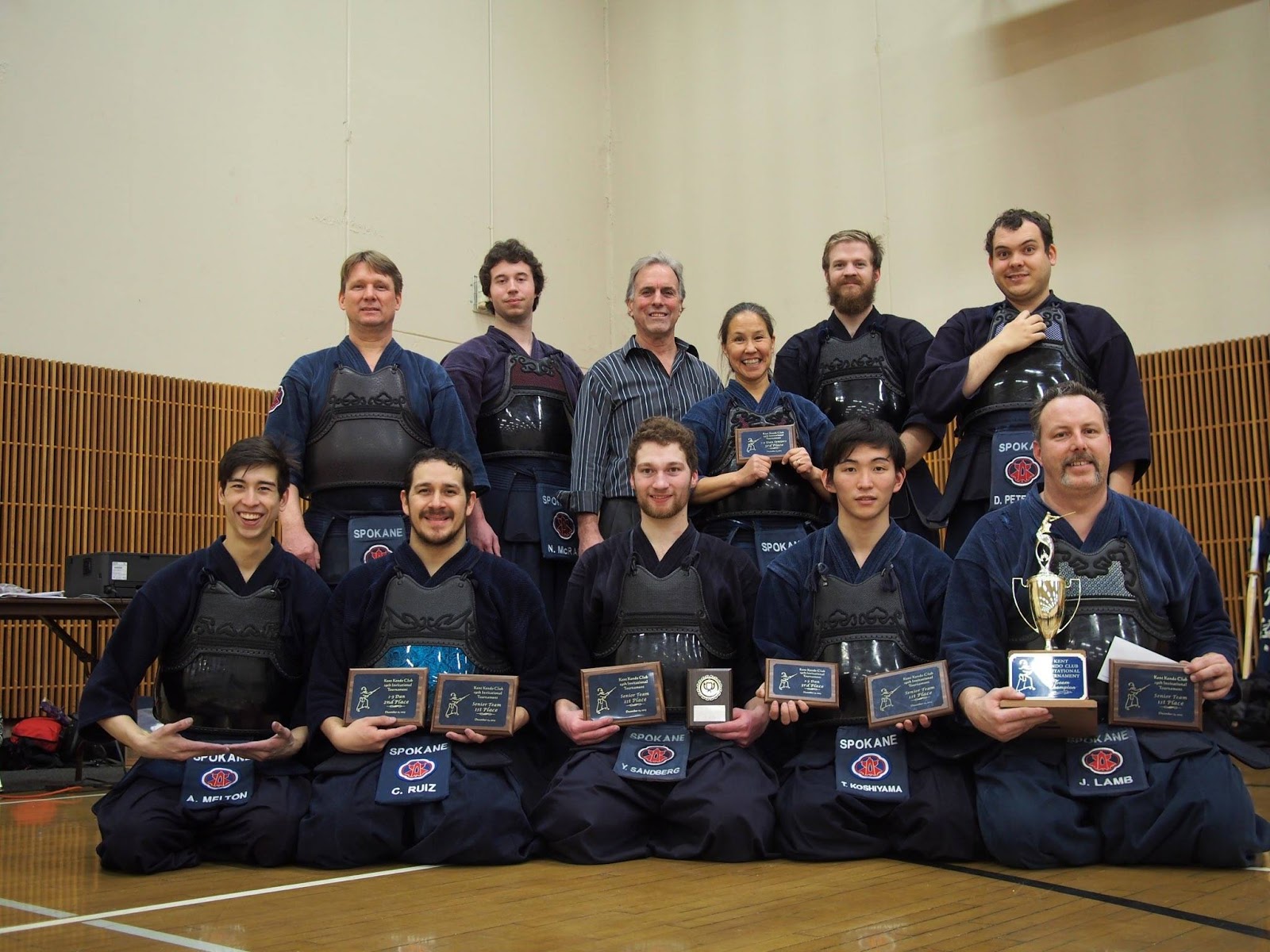 I'd have little time to recover, as Senior Teams were quickly starting. I gathered up with my team and gave a short pep talk before we took the court against our first opponent, Cascade. I was first out on my team (senpo) and was hoping that I was recovered enough from that marathon final match to do some good here in teams. My opponent was Yamauchi, another young fast shodan. I'd seen him before so was somewhat familiar with his kendo, but this was the first time I'd actually faced him. We started and I moved in, keeping the pressure on while trying to find and create openings. He was quick and had a lot of skill, that was for sure, but I had the experience edge and tried to use that to my advantage. We ran each other around the court well, and I had a few close calls with him where I thought for sure he'd taken a point on me, but the lack of flags kept us fighting through the match. It ended in a tie. I hadn't been able to get my team off to a win to start, but I felt like I had brought the spirit out and set a high bar there. The rest of the team picked up the tempo and soon took a couple of wins to put us into the next round.